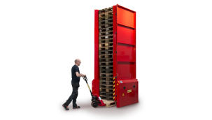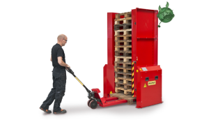 - Apilado: Los palets se introducen uno a uno hasta formar una pila de 15 a 25 palets, que luego puede ser extraída completa.