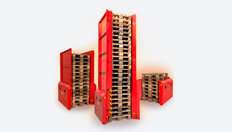 Apilado y dispensado semi-automático de 1 a 5 palets a la vez mediante botonera. 100% electrico sin conexión de aire.