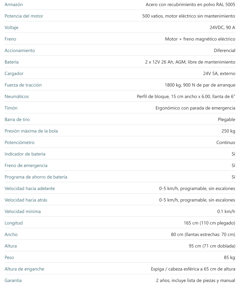 Idóneo para maniobrar en espacios reducidos para arrastre de cargas hasta máximo 1.500 kg.