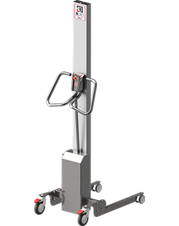 El carro elevador de acero inoxidable R.125 SS es muy potente y monta, mueve y manipula cargas de hasta 125 kg.