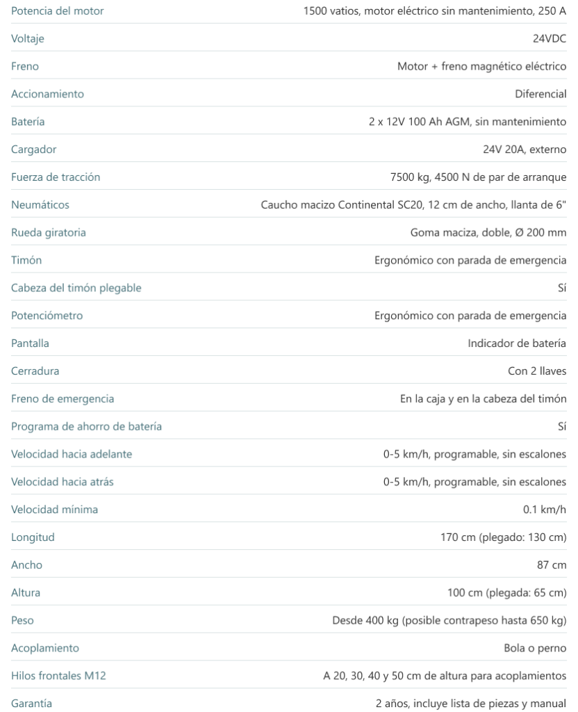 Idóneo para maniobrar en espacios reducidos para arrastre de cargas hasta máximo 1.500 kg.