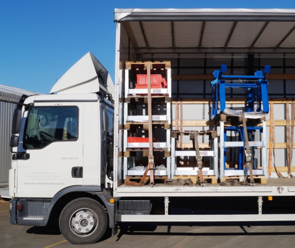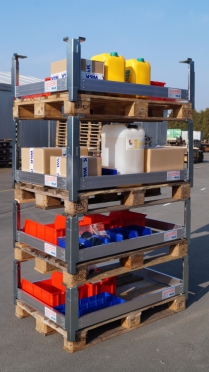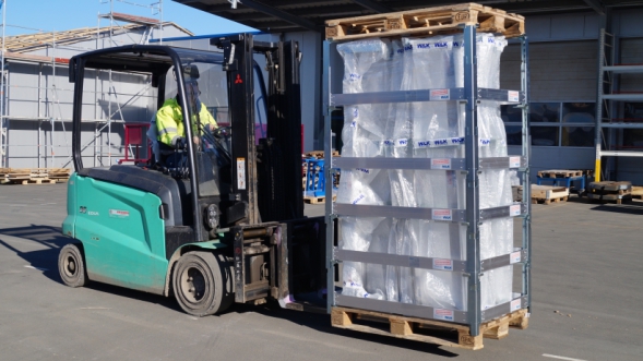 Incluso los productos grandes pueden transportarse fácilmente con la ayuda de nuestro sistema de apilamiento de palets Paletty